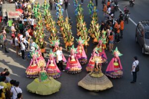 Parallel to the religious ceremonies are the lively public festivities. Streets come alive with parades, pageantry, and street dancing — a vivid display of community spirit where schools, organizations, and barangays take part in “Mardi-Gras”-style performances. The week also features beauty and personality pageants, talent shows, and food and trade fairs that highlight the city’s agricultural products and craftsmanship.